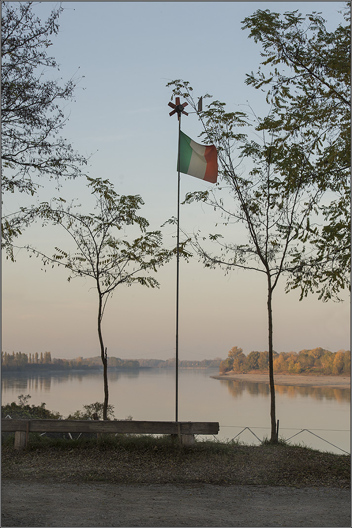 Sottili e birichini questi rami spogli. La bandiera si impiglia nella loro braccia, e un pizzico di austerità patriottica si stempera dolcemente in questa visione delicata. Luci ben condotte, e una visone del fiume elegante ma anche realistica .