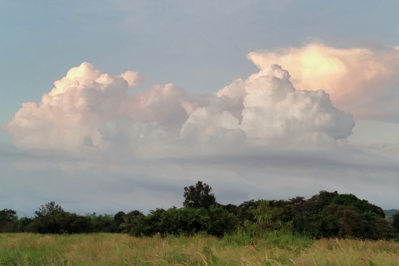 L'altro giorno stavo in paese in moto e vedo questa splendida nuvola che spunta dall'entroterra. Purtroppo era pieno di pali della luce e altri elementi vari che non mi permettevano di fotografarla in maniera pulita e allora ho deciso di inseguirla verso le colline interne. Pensavo che dopo un chilometro, alla fine del paese, l'avrei beccata intonsa ma ne ho dovuti fare almeno altri tre per arrivare al primo punto buono, a ridosso del tramonto e quindi in condizioni ottime di luce (che era laterale). Poco più avanti un altro punto ancora più panoramico, ecco tre foto che indicano quanto appena descritto: