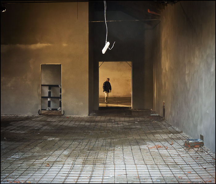 Si entra quasi per caso nella struttura disabitata, come riferimento l'uomo in fondo, ma anche l'autore che ci invita ad osservare...