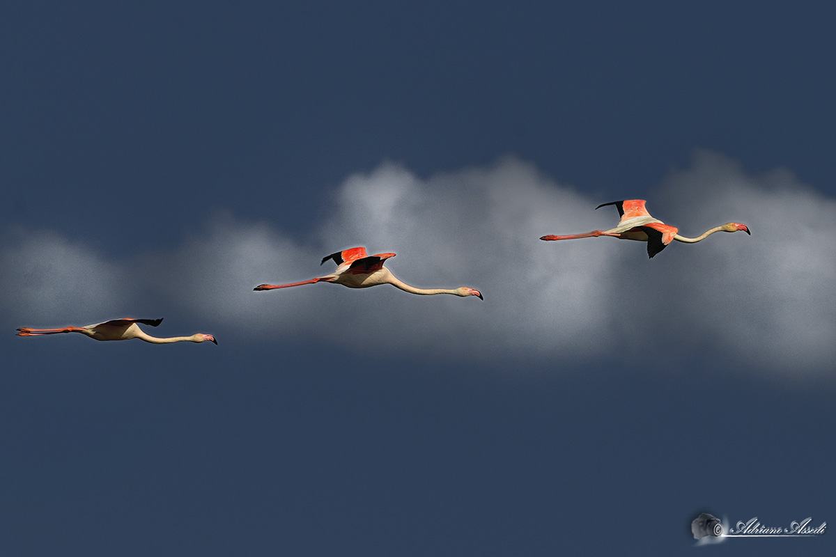 | l'immagine in se mi piace molto con i fenicotteri belli illuminati...si notano però degli antiestetici aloni intorno ai soggetti e in particolar modo sul centrale. |