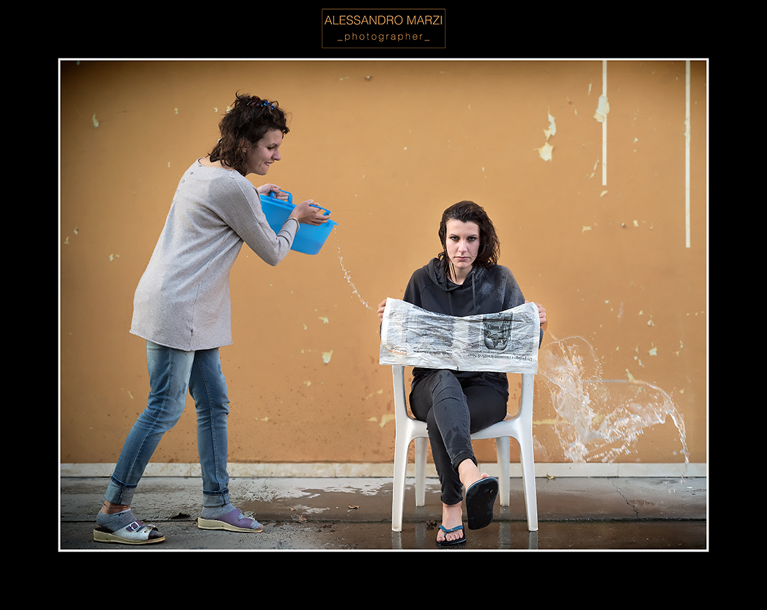 Forse la vignettatura è di troppo, per il resto Wow. Che bagno. Uno sdoppiamento divertentissimo, e l'espressione di lei è fantastica, ahah giornale fradicio compresa. Una ne pensate.. e più di una ne confezionate! Che coppia!