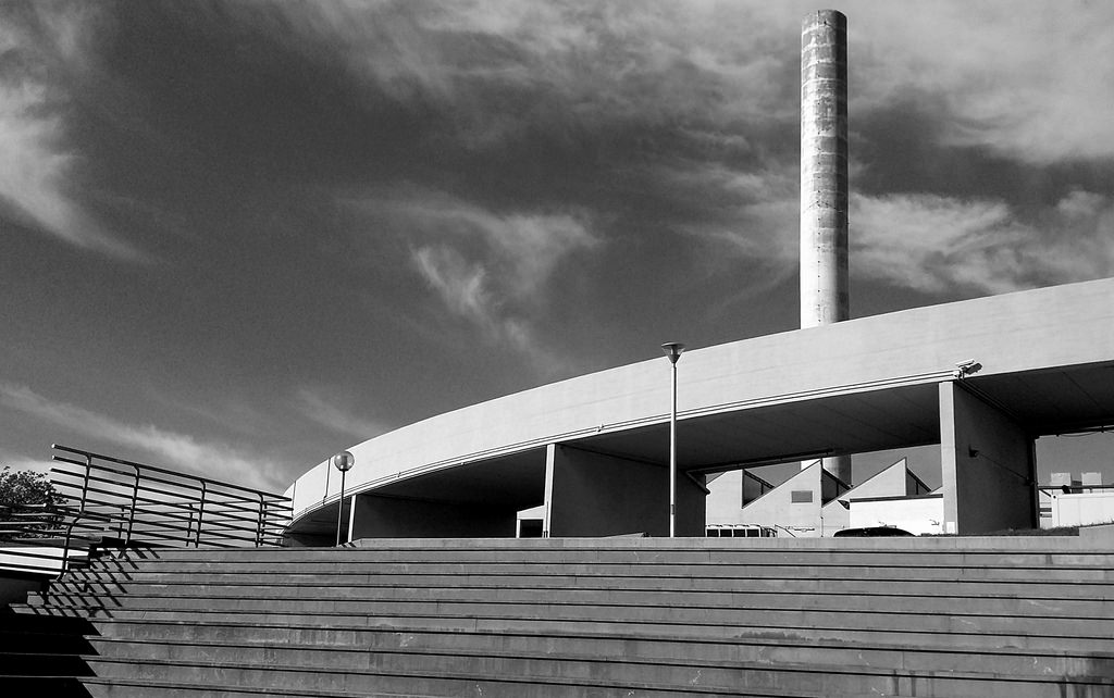 le scale sono storte perchè ho cercato di tenere diritta la ciminiera. i cespugli a sinistra non li avevo notati! altrimenti li avrei croppati... figuratevi che la foto l'ho fatta col cellulare in ospedale due giorni prima di operarmi proprio perchè mi era piaciuto molto il paesaggio neotopografico che si godeva dalla scala antincendio!