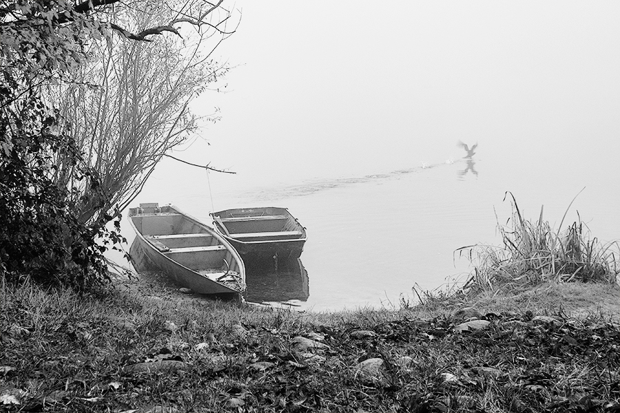 Mi piace veramente molto la rarefatta magia di questa alba quieta e nebbiosa.
