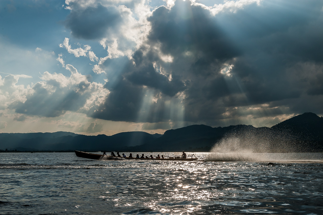 una bellissima atmosfera minacciosa colta dove i raggi che trafiggono le nuvole ed il riflesso di luce sull'acqua la fanno da padrone