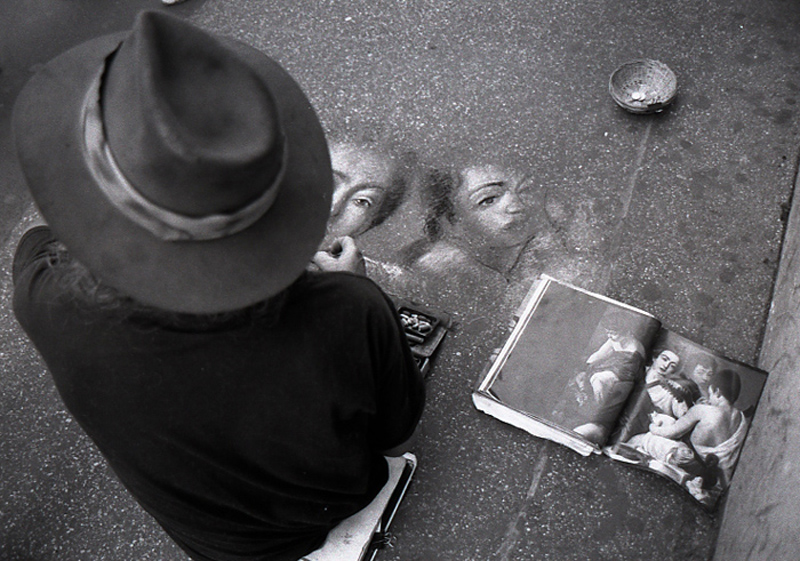 E' uno scatto al volo, buono per la composizione (anche se un pò stretta) ed il b/n, ma poco significativa soprattutto per il momento, con l'artista non in opera, distratto...IMO _________________