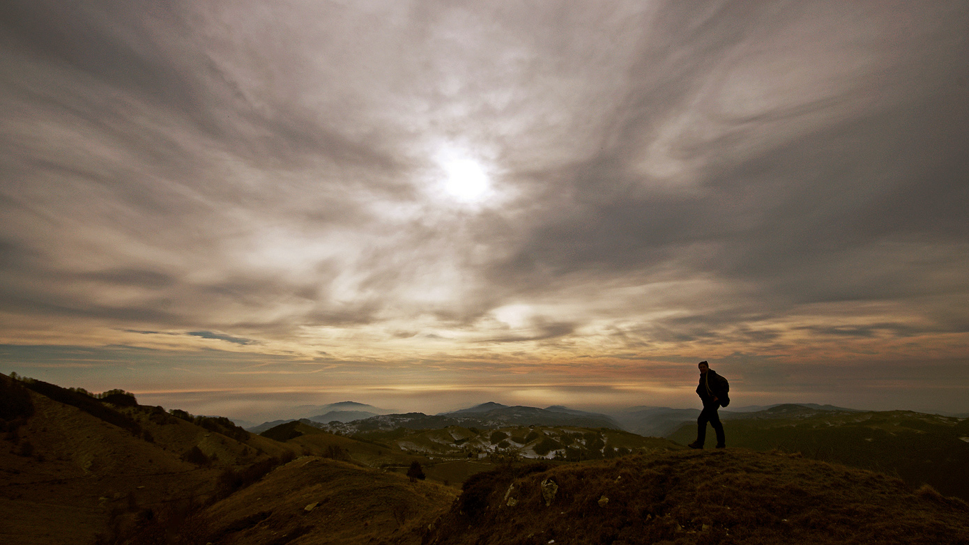 Visione mistica sul cielo tanto che l'escursionista sembra l'asceta a contatto col divino...