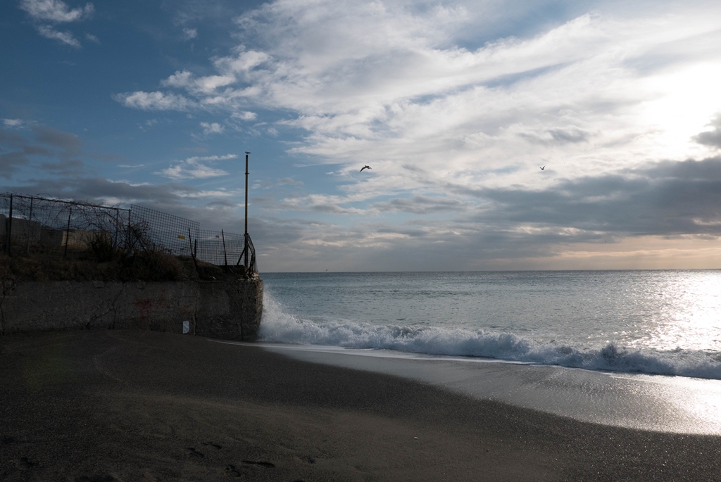Questo parziale controluce denota un leggero flare nella parte in basso a sinistra, nella zona di luce chiusa dettata sicuramente dalla media pesata nell'impostazione dell'esposimetro, che di conseguenza ha bruciato le alte luci dell'acqua, delle nuvole e sulla sabbia bagnata.
