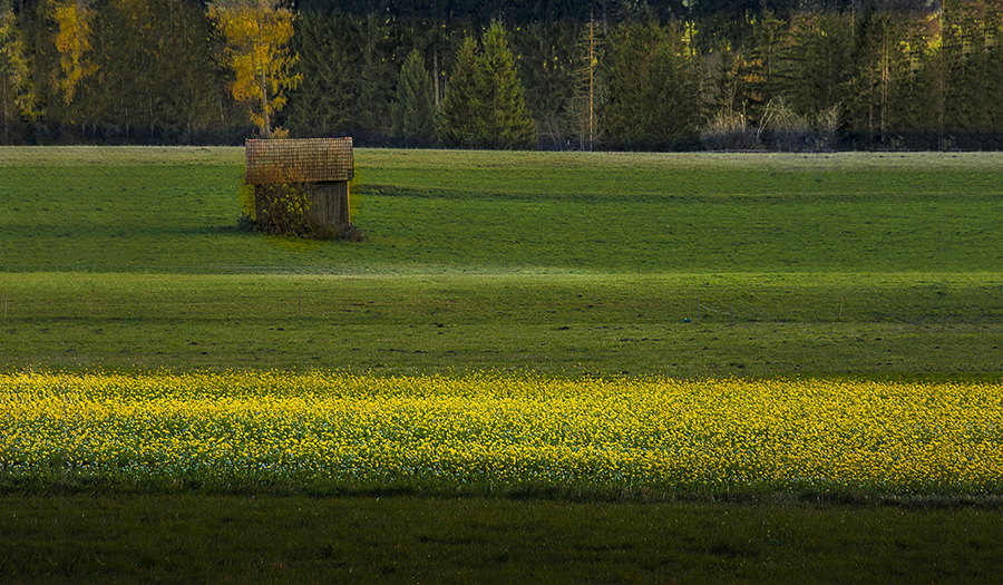 è un bel vedere tutte le sfumature di verde e la casetta che fa da contro-altare è la classica, ma sempre efficace, ciliegina.