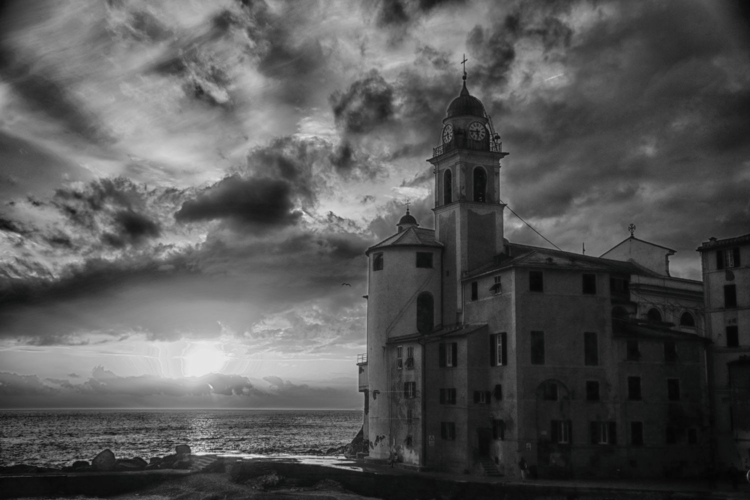 La foto è bella, hai giustamente esposto per le alte luci, ora devi "recuperare" le ombre senza schiarire la parte di cielo attorno alla chiesa di Camogli.