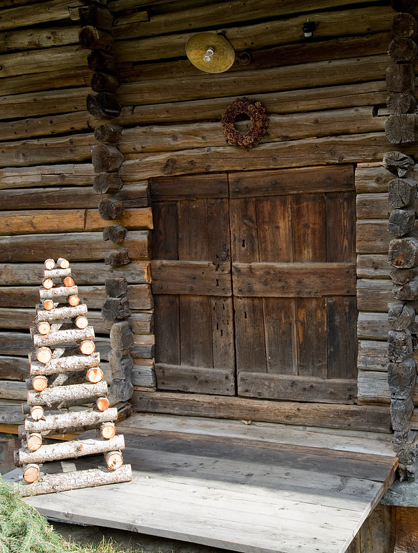 La pila di tronchetti e il gradino sparano un po' e distraggono l'occhio dal resto della porta piu' scura.