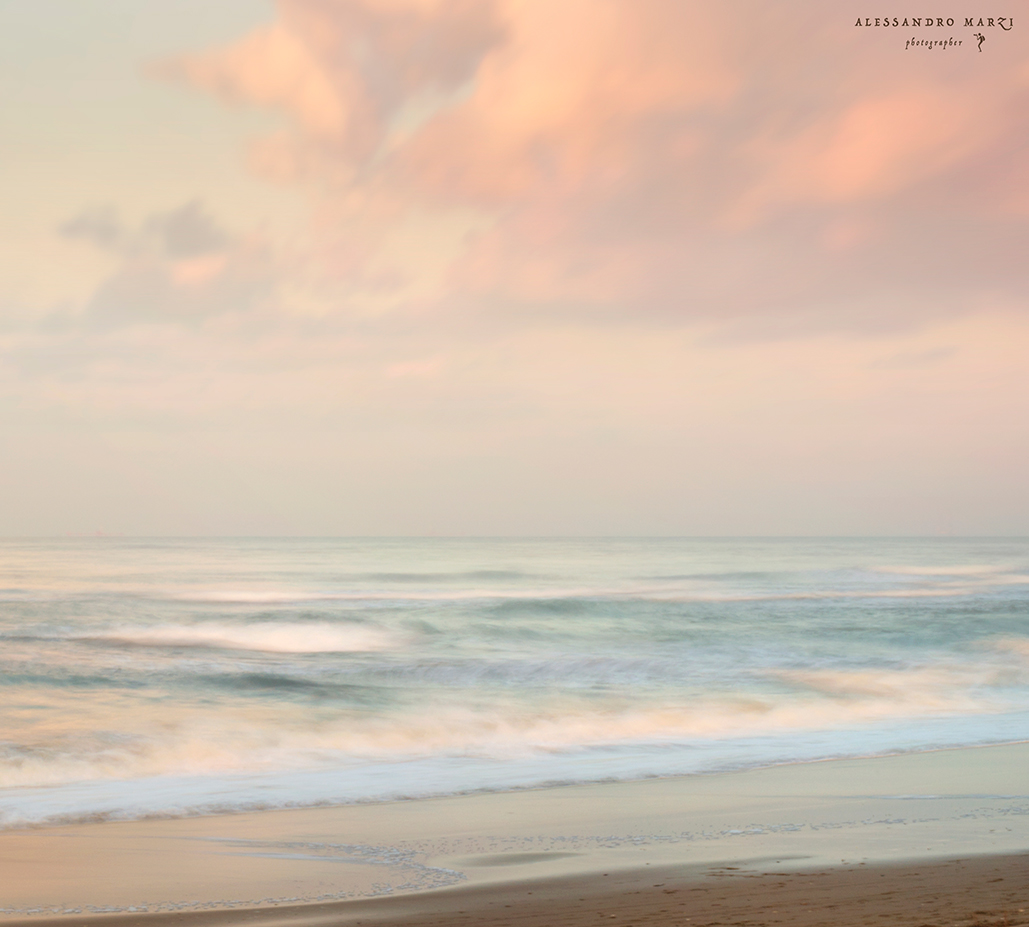 Mi piace pensare che la suddivisione in tre parti della foto sia proporzionale al peso degli elementi. Una parte importante, 1/7 circa di sabbia (asciutta e bagnata), 2/7 circa di mari e 4/7 circa di aeroso cielo.