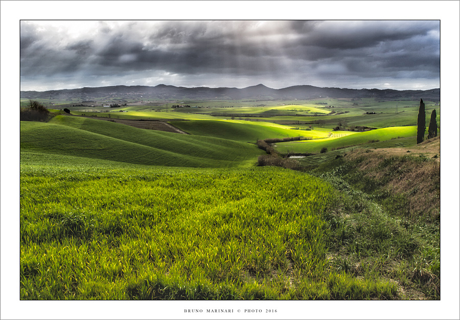 Momento di luce eccellente che hai saputo catturare con bravura. Bello il paesaggio. Non riesco a capire se quei due cipressi (troppo sul bordo) ci stanno o no ...  _________________ Fiorenzo Carozzi