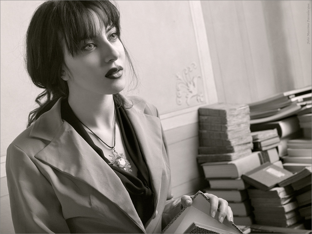 Mi piace l'espressione attonita e persa di lei. La composizione l'avrei preferita più larga dando più spazio al libro che ha in mano e ambientando ancor di più lo sfondo (riprendendo più libri/faldoni). Ciao Maestro  |