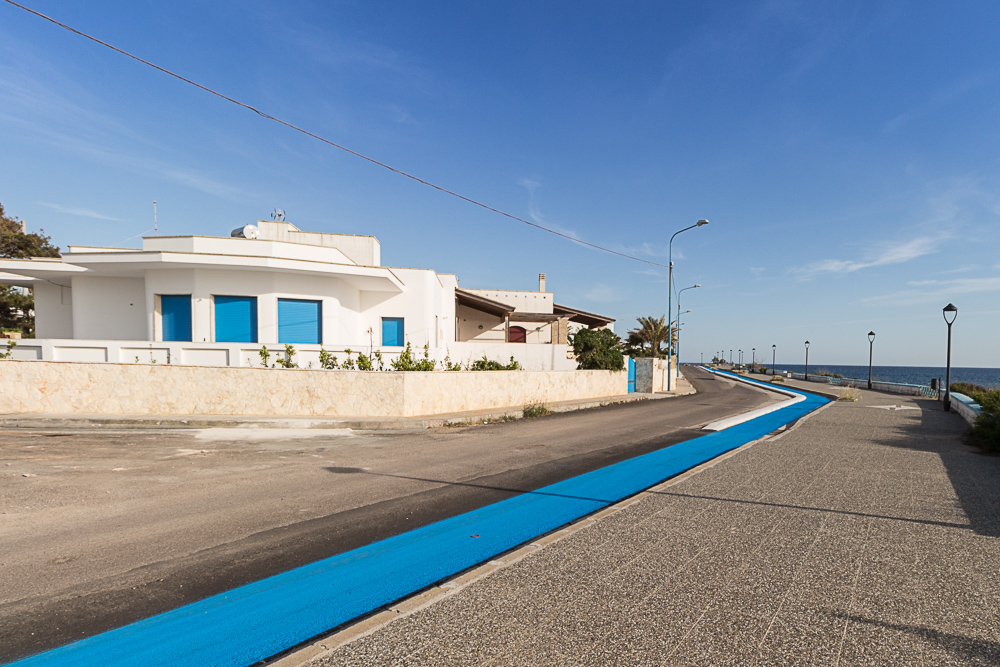quella striscia blu che conduce l'occhio dell'osservatore verso un punto indefinito la trovo strategica ai fini compositivi. pazienza se non capisco bene cosa sia. una pista ciclabile ? Mah