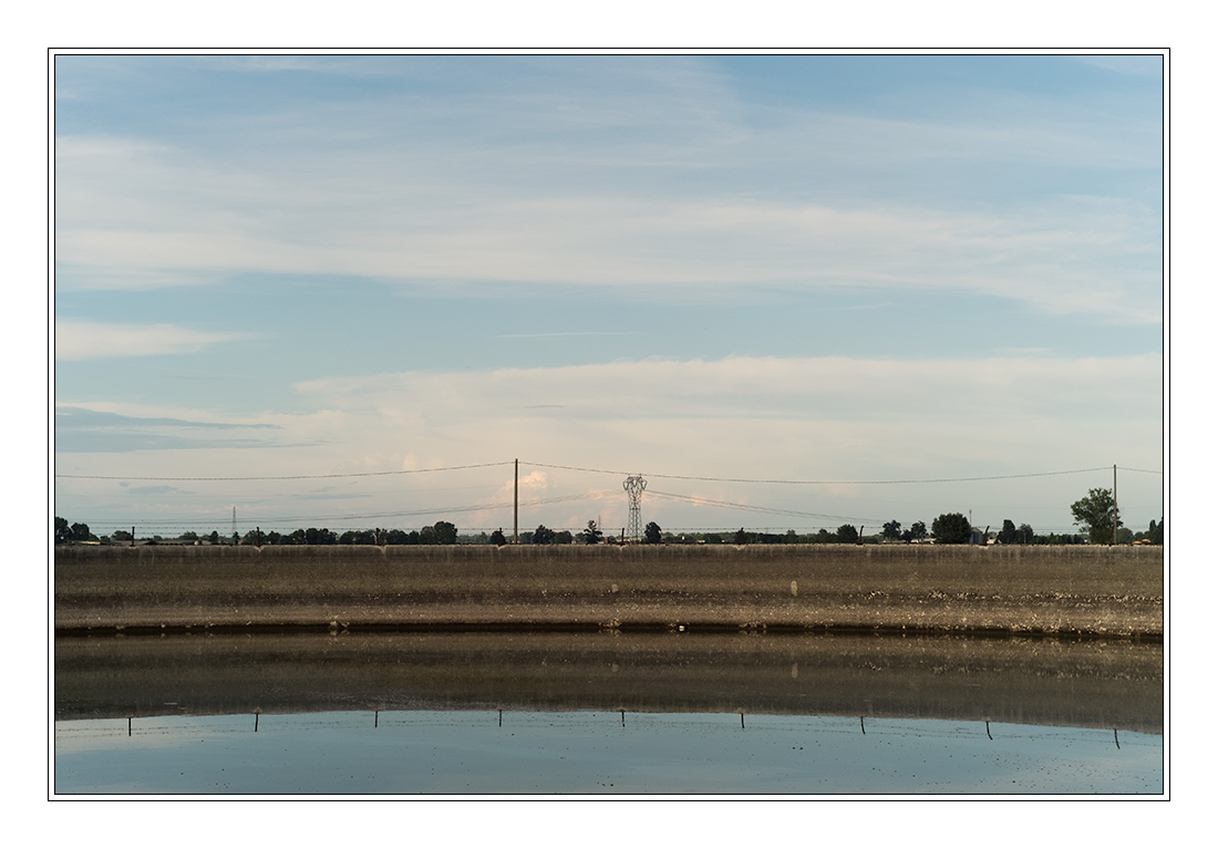 Quando il paesaggio si fa sintesi ed essenzialità. Particolari precisi e netti, ma lontani. E anche i cavi e tralicci possono essere narcisi e cercare nelle riflessioni il loro momento clou...
