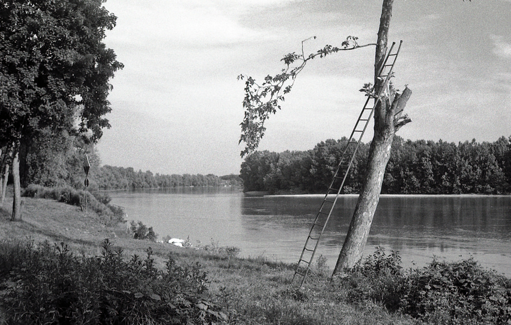 Essendo una vecchia camera a telemetro (pure un po' starato in verticale), ero concentrato sulla scala da far cadere a fuoco. Ho deciso dove posizionarla rispetto alle cornici e per puro caso le fronde della pianta potata,