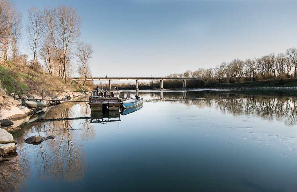 Qui l'orizzonte centrale ha un suo perchè , anche estetico, visto che viene a coincidere con il pontile che setta in due parti equilibrate il fotogramma. Buoni i riflessi dorati degli alberi nell'acqua, il più possibile integri e con il soggetto barchette al posto giusto. Sul mio monitor, la vedo, forse, di un nulla, sovraesposta. Un filo di correzione, pochissimo, con una curva in post, basterebbe. Un buon ingresso nel forum.