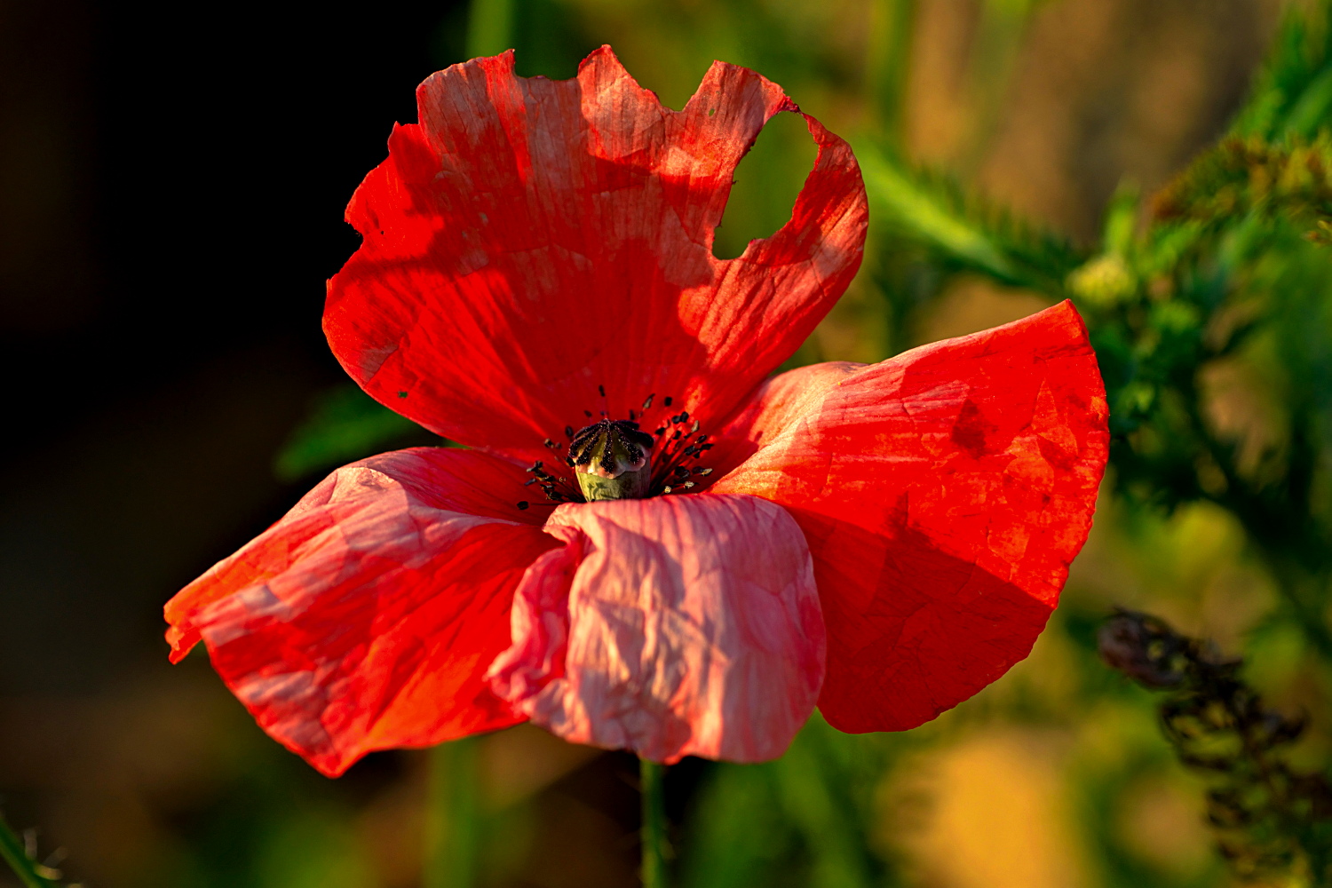 Grazie del commento, per la posizione centrale è una mia scelta personale fuori dagli schemi classici. Lo sfondo avrei voluto inglobare solo la parte scura che si vede sulla sinistra del frame ma questo avrebbe inficiato la bella luce radente che colpiva il papavero.