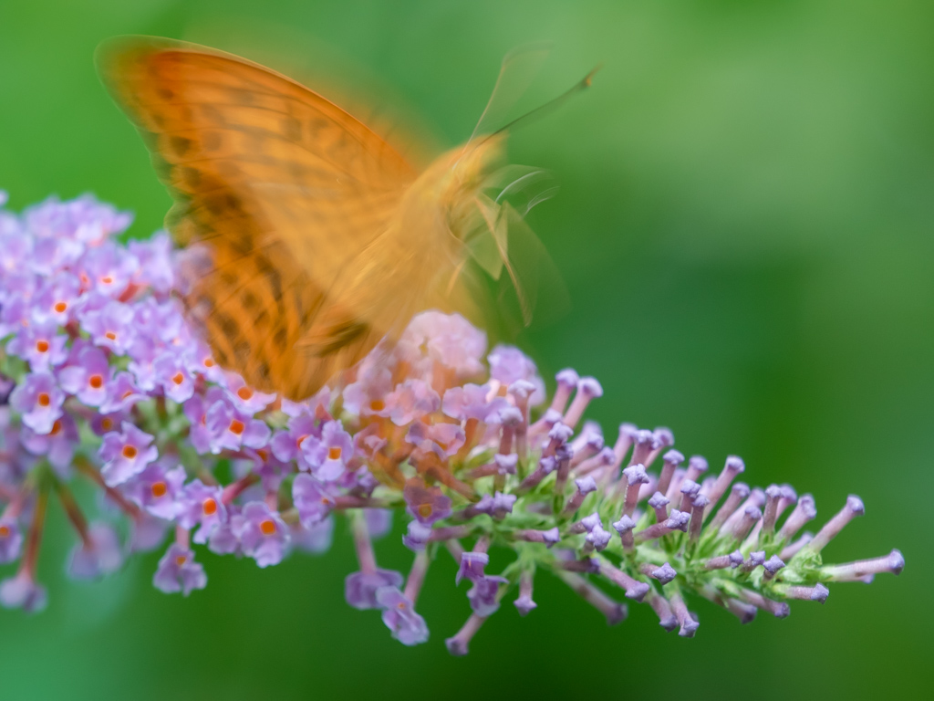 gradevole il contrasto tra nitidezza e evanescenza della farfalla.