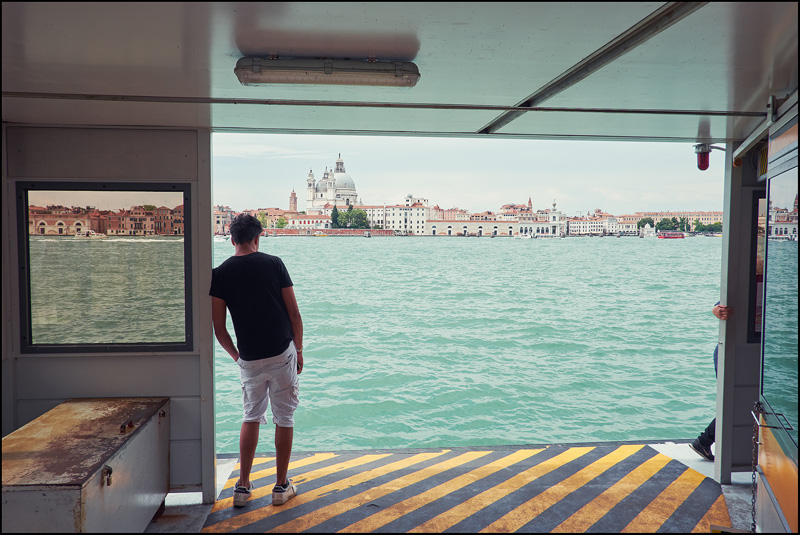 Un sacco di elementi forse non tutti direttamente relazionabili: il "protagonista", il tizio che esce dall'inquadratura, il motoscafo nel "riquadro"...