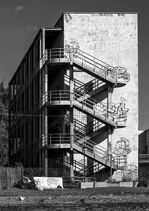 soggetto molto interessante , ma ripreso con poca cura , posizionandoti il più frontale possibile avresti reso la ripresa più formale e rigorosa , eliminando anche qualche elemento di disturbo , stringendo l'inquadratura o schiacciando i piani avresti potuto giocare maggiormente con l'architettura della scala la sua asetticità e le ombre ....