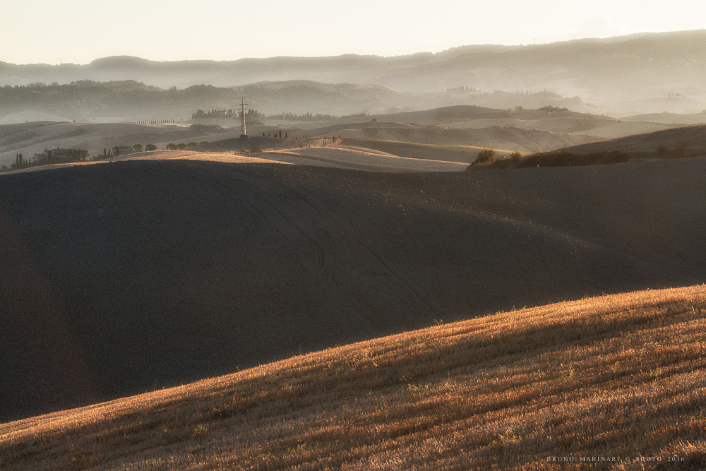 Bella la luce radente e la composizione, nonchè l'effetto provocato dalla nebbia in distanza che non va a disturbare una nitidezza piacevole fino ai visibili cipressi. Sognante , complimenti