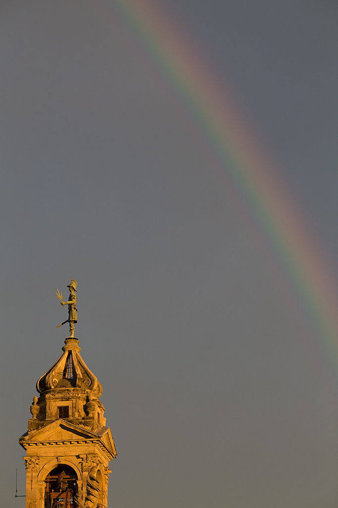 Grazie del passaggio, MTJ CYMK. Il colore del campanile è naturale, illuminato dalla luce calda del tramonto.