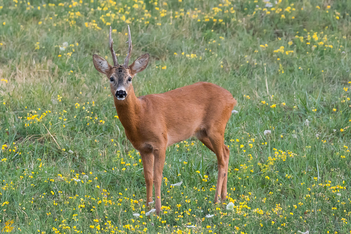 è sempre adrenalinico scattare con questi tempi fruttando solo l'appoggio della lente sul vetro dell'auto, croppando leggermente ho posizionato la testa sul primo terzo, il resto del corpo per forza di cose è finito centrale, avevo pensato anche ad un taglio 1-1 ma poi ho lasciato che il bel prato fiorito lo circondasse...