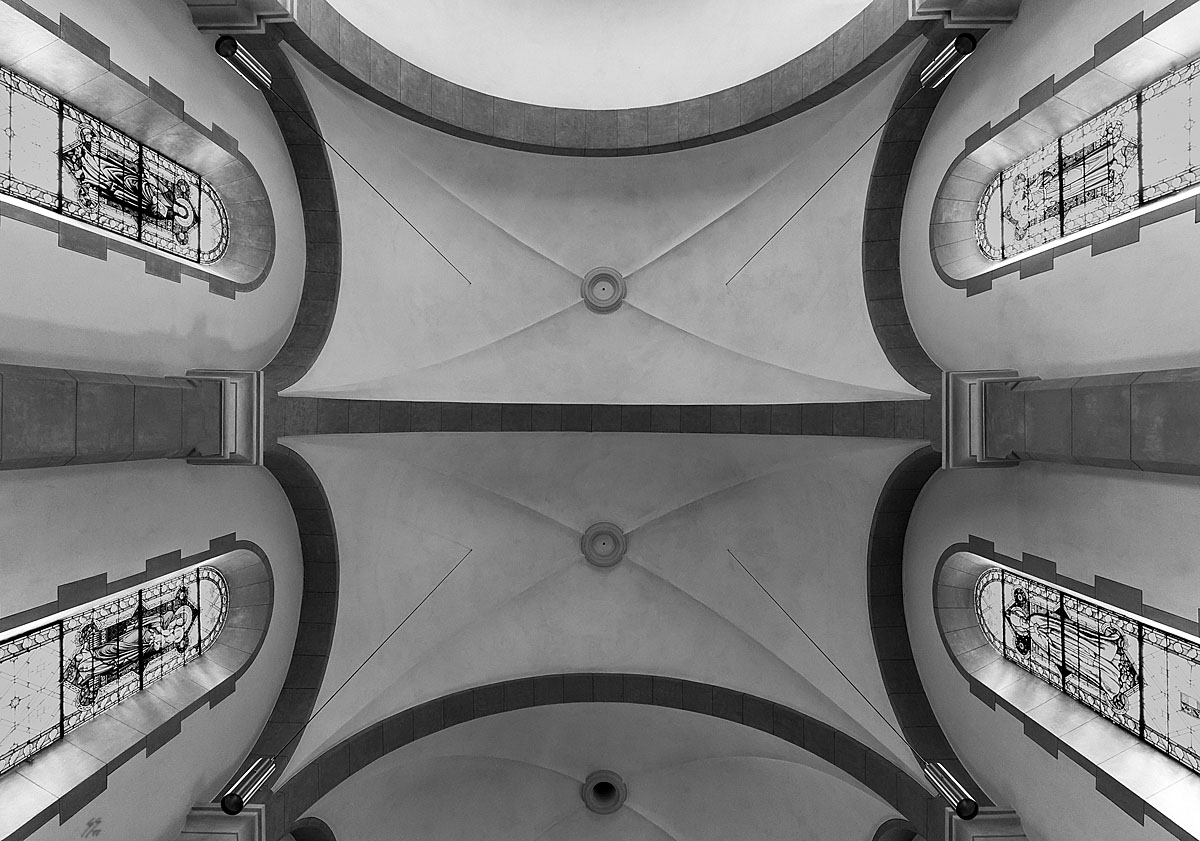 La foto è simmetrica perfetta ma la luce forte ti ha fatto perdere definizione sulle vetrate legate a piombo..la parte bassa.