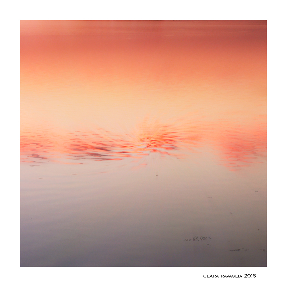.....qui non ci sono né cielo né nuvolette, in realtà: sono solo gradazioni dell'acqua al tramonto nel bacino Baiona in valle, in cui andando verso lo sfondo le tinte cambiano dal grigio azzurro all'arancio, e cambiano ogni giorno al tramonto.... Io mi sono presa solo la libertà di muovere un po' le ondine increspate che stanno naturalmente sulla superficie dell'acqua.