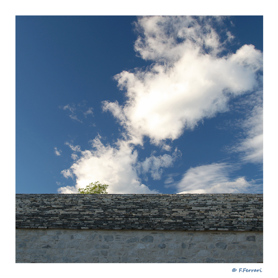 Mi piace, bello lo stacco tra il muretto e il cielo arricchito da splendide nuvole. Ok! Ciao