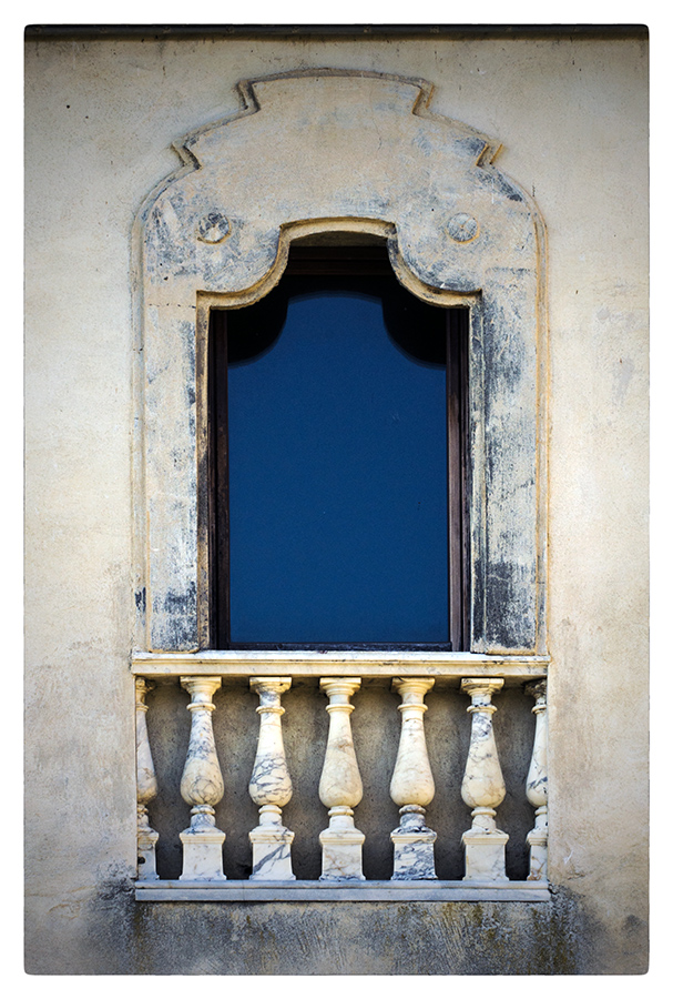 | Simmetrica e con belle cromie. Il colore del vetro è intonato alle venature della balaustra. |