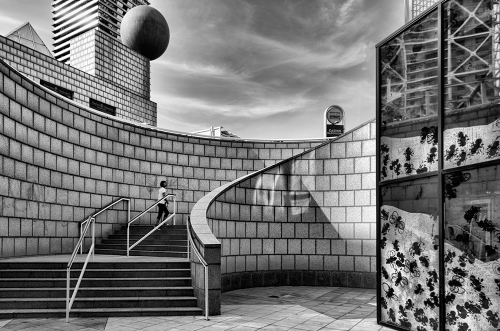 bene scattare largo ma a volte è meglio rinunciare a qualcosa, elimina qualcosa in alto magari partendo dal bordo palazzo in secondo piano, se nn proprio addirittura dall'inizio della parete curva in modo da concentrale l'attenzione sulla bella scalinata e sulla persona che la adorna.