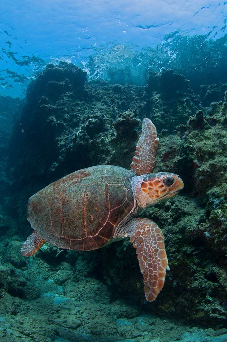 Una tartaruga caretta caretta sorpresa a 'volare' (vi assicuro che non nuotano: letteralmente volano nell'acqua) nel mare del Peloponneso.