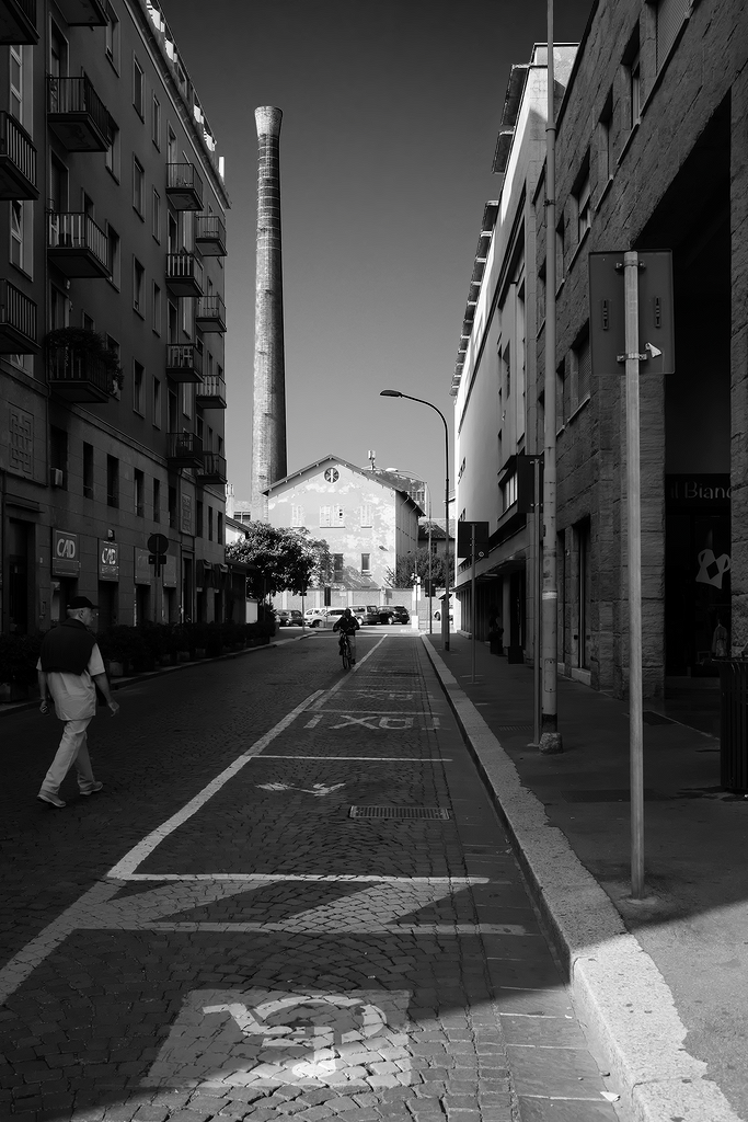 Bella prospettiva urbana che ci conduce alla vecchia struttura industriale,quasi un viaggio verso il passato.Ottimo il bn e perfetta la tenuta in asse.Complimenti!  _________________ Sergio Demitri https://www.flickr.com/photos/124946035@N02/ |