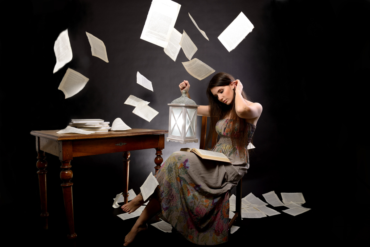 | Shotting in studio, pagine lanciate da un assistente e raffica di scatti, nessuna apposizione di elementi in post |