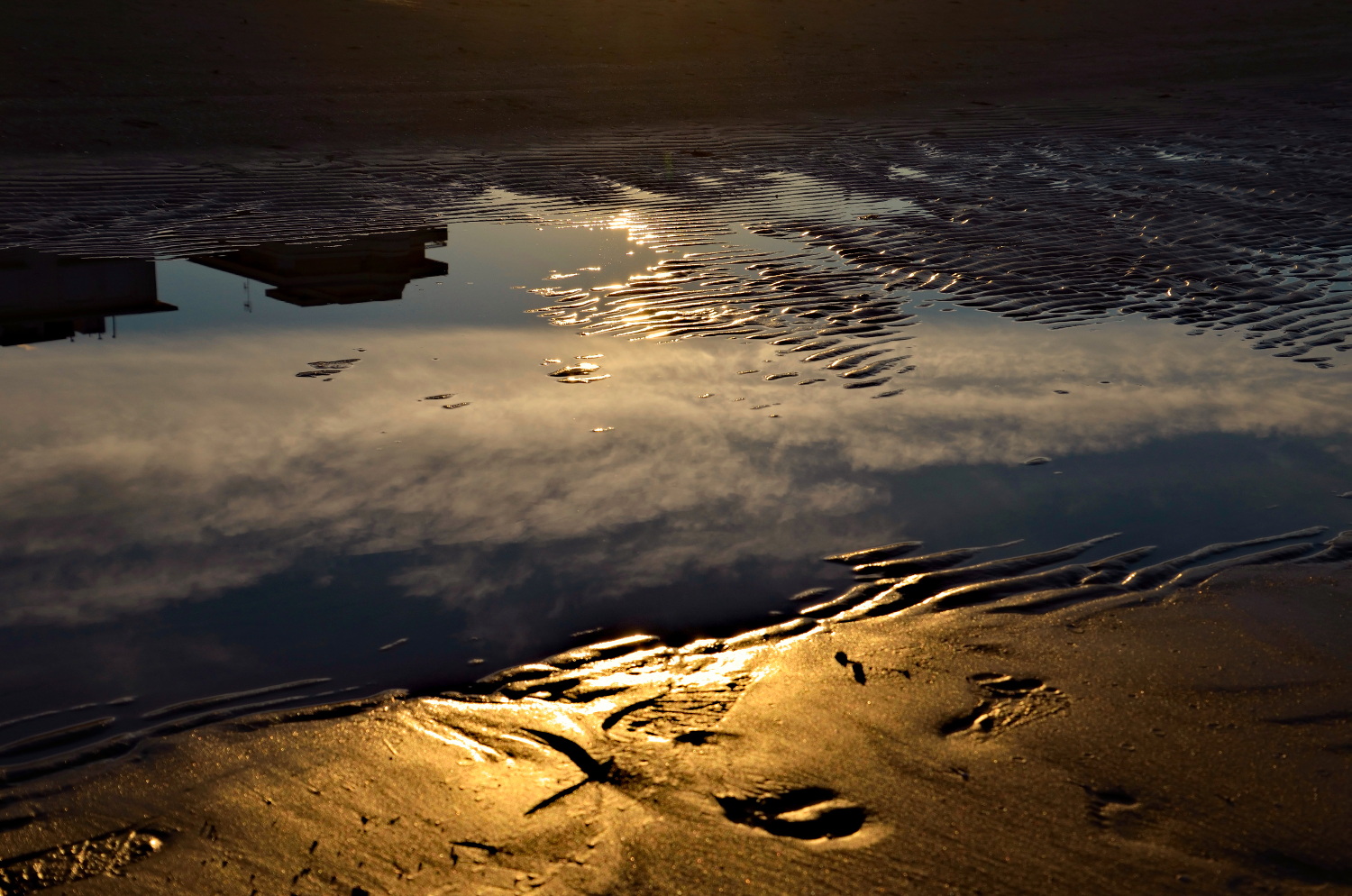 Ciao coccomaria, lo scatto mi intriga per il contrasto dei toni caldi e freddi dati dalla pozzanghera e della sabbia. Per una questione di gusti personali, potendo, avrei forse cercato una maggiore nitidezza del primo piano e una maggiore porzione di riflesso.  |