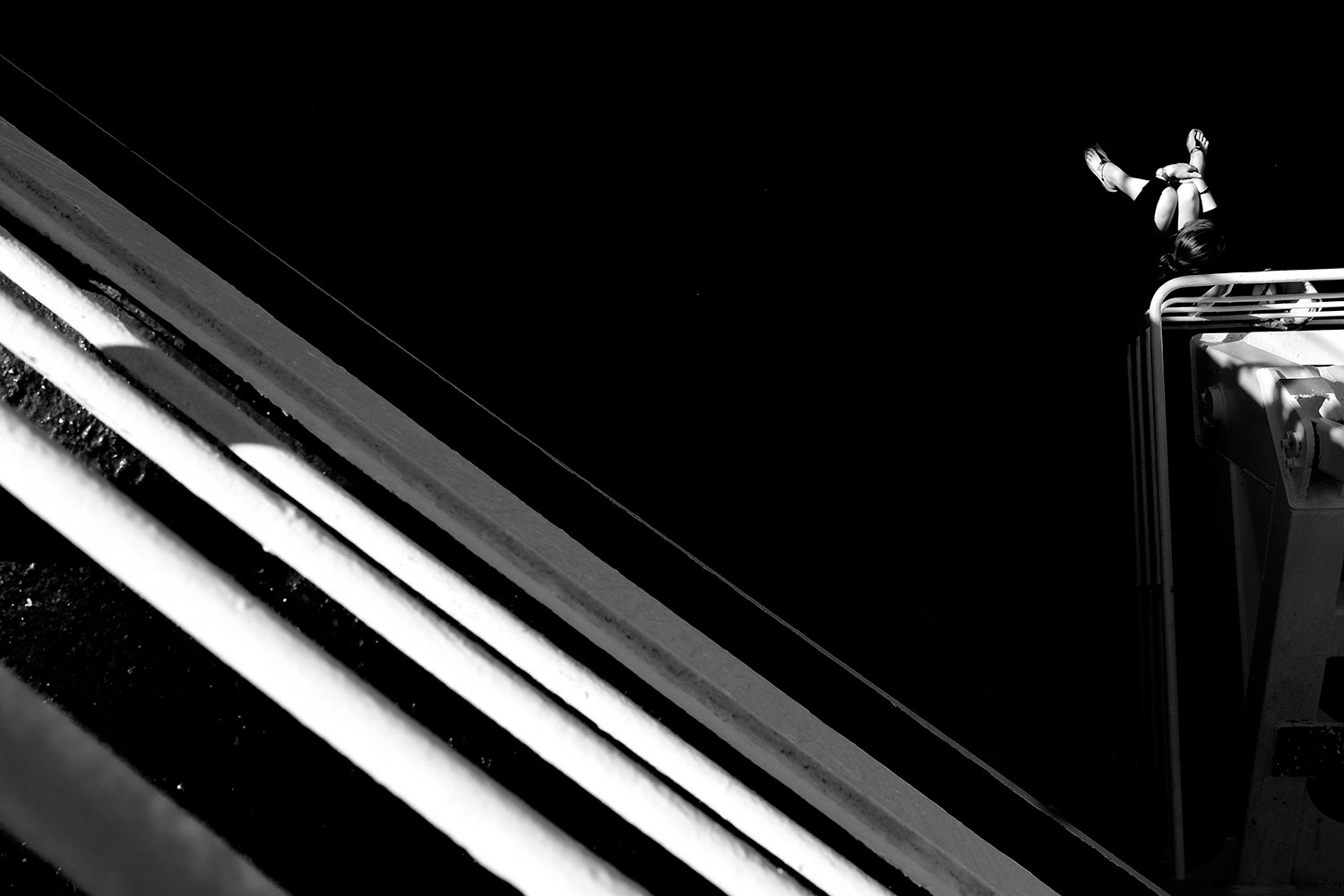 Un grafismo estremo in cui la diagonale ci guida verso la figura umana ben illuminata che sembra sospesa su un vuoto nulla  _________________ - Fotografo della domenica |