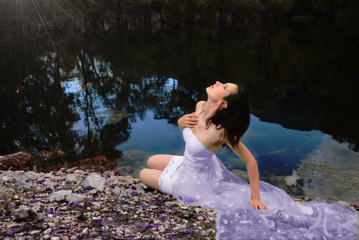 Secondo me invece potevi confondere la coda del vestito con la pozza d'acqua, anche a costo di rovinarlo; avrebbe potuto essere un bell'effetto.