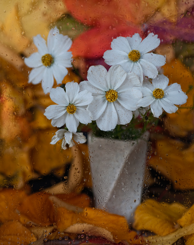 Ottima la vaghezza umida di queste corolle candide , accerchiate da un contesto vivido, di tinte calde ed autunnali.