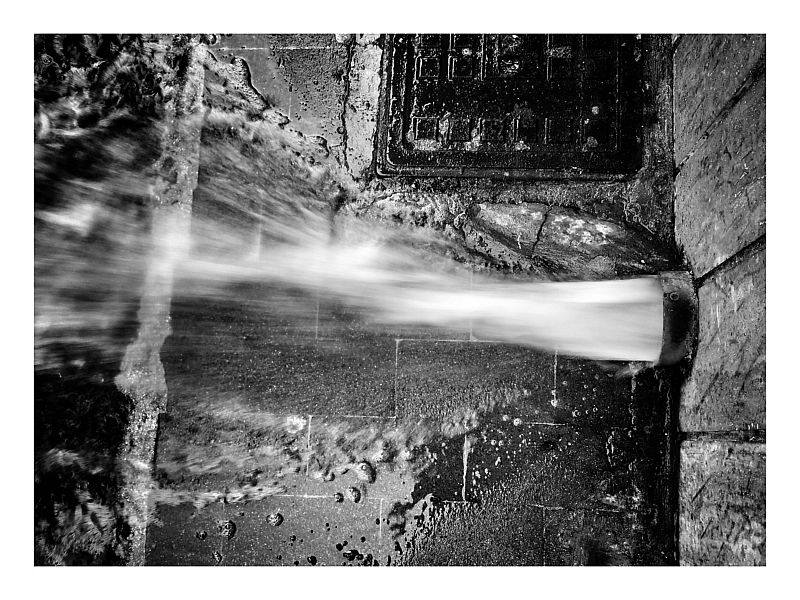 Un'immagine semplice di questo scarico urbano enfatizzato da un ottimo BN e dalla scelta di un tempo di scatto un po' prolungato Ok! Ok! Ok!