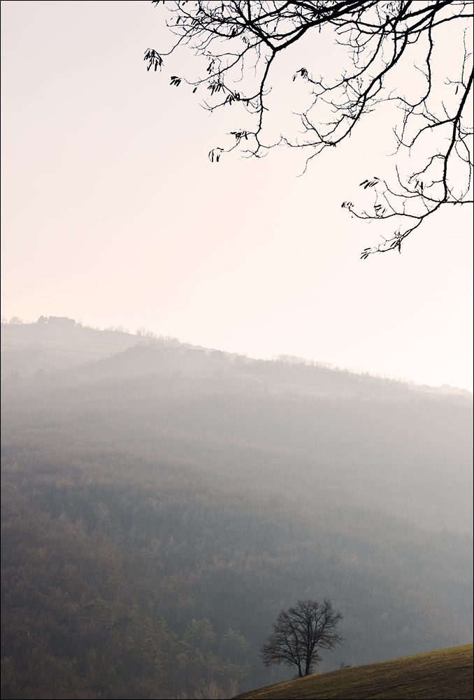 Atmosfera sublime. Quella foschia accennata attraverso la quale la luce filtra lattiginosa e con cromie affascinanti. Naturalezza e magia. Speciale la composizione con elementi sì lontani ma ravvicinati da quel silenzioso tendersi una virtuale mano. Preferita