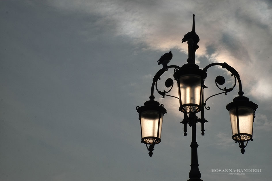 la ragnatela è una chicca del controluce. Strano questo lampione multiplo, con i portalampade in cascata verso il basso. Per il punto di ripresa, e per inglobare la luce reale diurna nei vetri, credo che tu abbia composto al meglio.