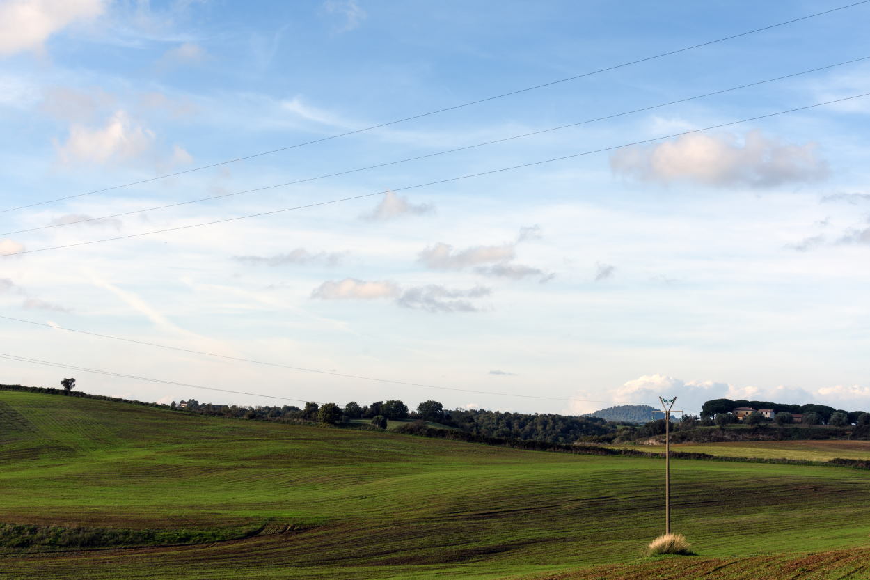 | Di ampio respiro, dolcemente ondulata e rilassante ti porta inevitabilmente a scoprire quanto siano invasivo cavi e tralicci seppur ormai parti del paesaggio. Belli e naturali i colori. Un paesaggio che non strepita, quieto ed avvolgente.
