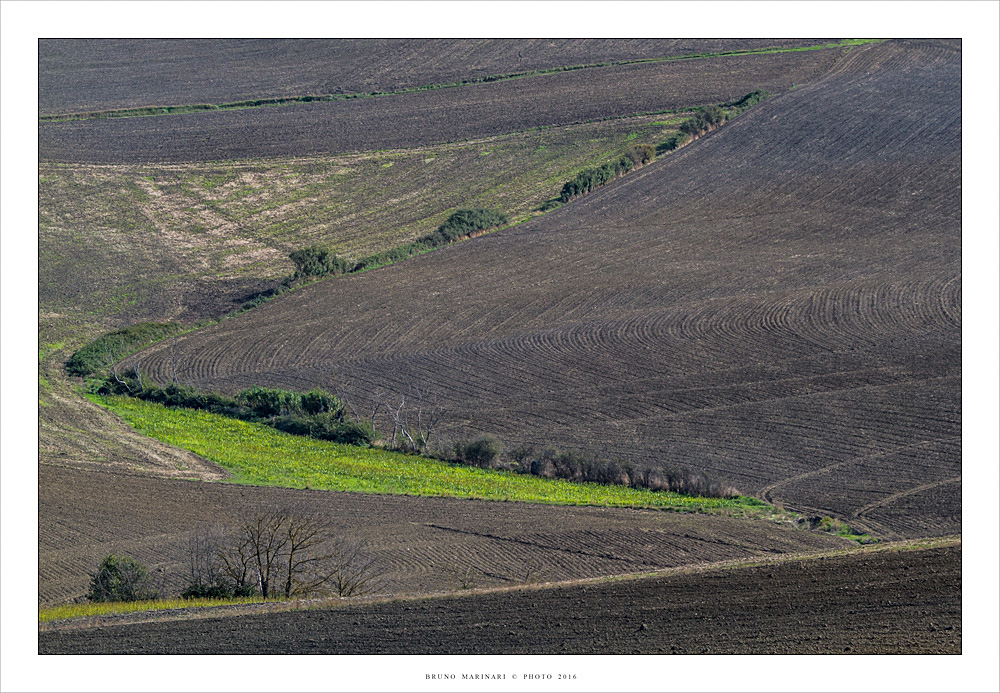 Molto bella la naturale serpentina verde che segna il percorso dell'acqua tra i dolci declivi.