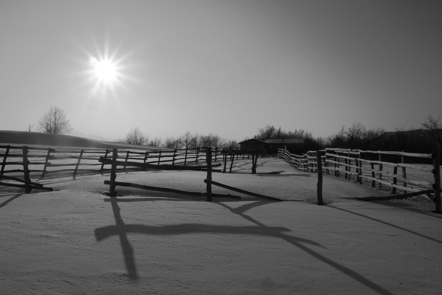 Molto bene la composizione e la grande attenzione al gioco complesso di ombre nella neve. hai sfidato coraggiosamente il sole pieno e alto, con un diaframma 22 che ri regala una forma a stella accennanta, ma porta poi case e steccati in sfondo ad ombre serrate. Tutto accettabile, tranne la resa assolutamente grigia della neve, senza brillantezza, che potresti trattare diversamente con una conversione più equilibrata. Il risultato non è, per me, di sole abbagliante, ma di sole freddo, come un senza luce in pieno sole...
