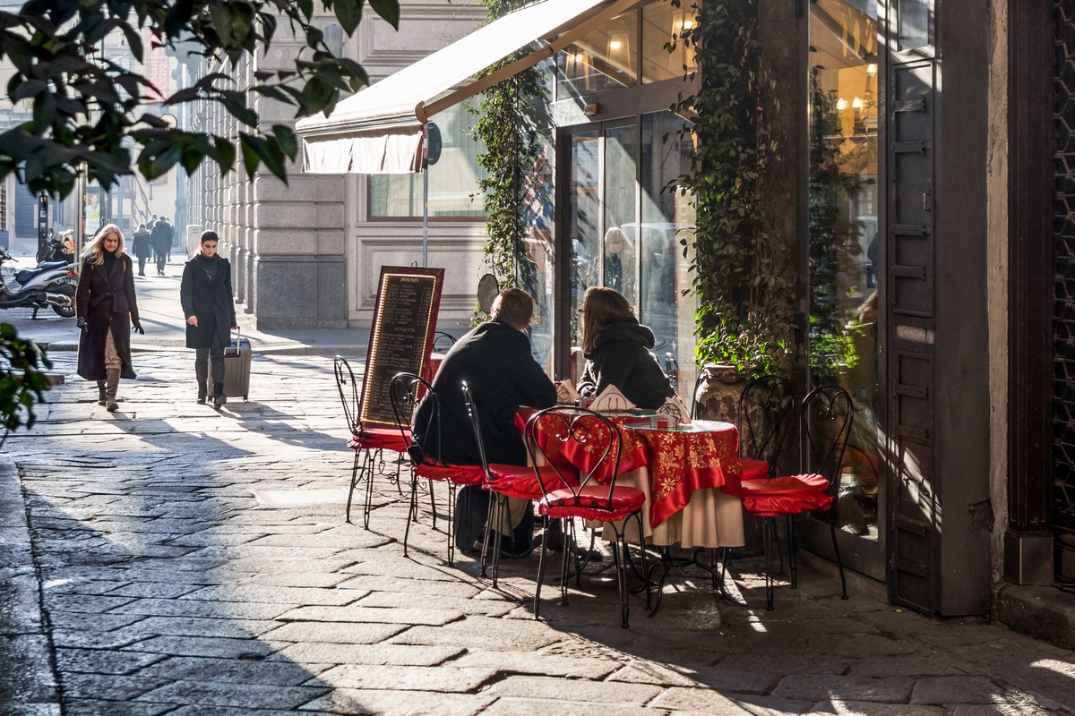 Il punto forte della scena sarebbe quello che ruota attorno ai vivaci rossi e oro di sedie e tavoli accarezzati dal bel taglio di luce, ma se poi non c'è nient'altro da gustare in una scena tanto ampia... si rimane digiuni.