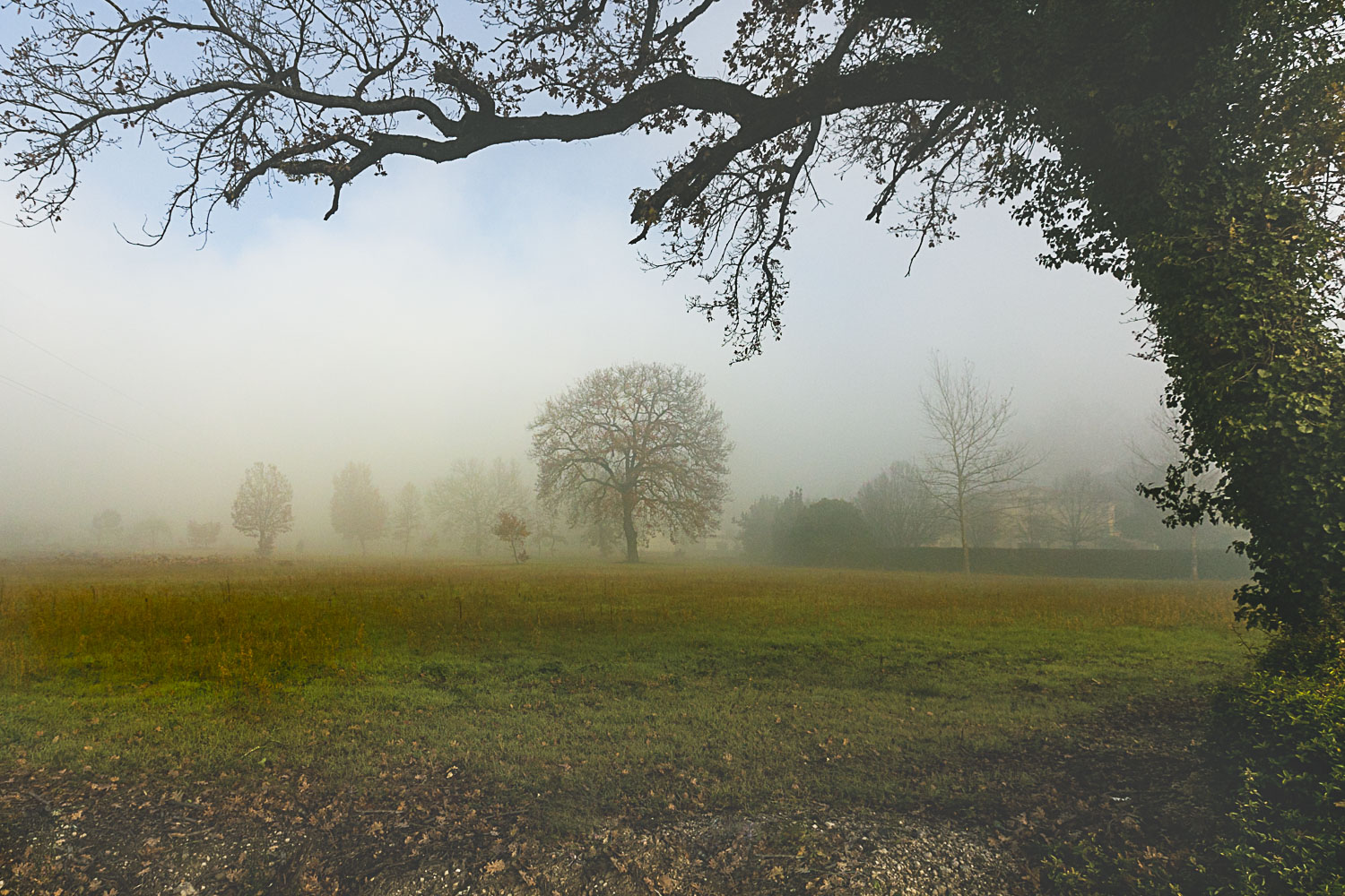 | Campagna del basso Lazio, la luce iniziava a fare spazio alla nebbia. |