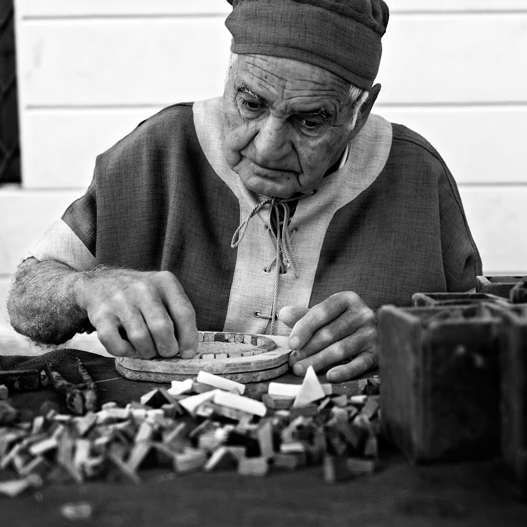| 1962 ha scritto: | hai tenuto un bw morbido ma ben gestito a mio avviso. Mi piace anche come hai immortalato il soggetto, non capisco bene cosa stia facendo, un'artigiano immagino che sta costruendo qualcosa, sembrano pietre. Sono piccoli mosaici?  |