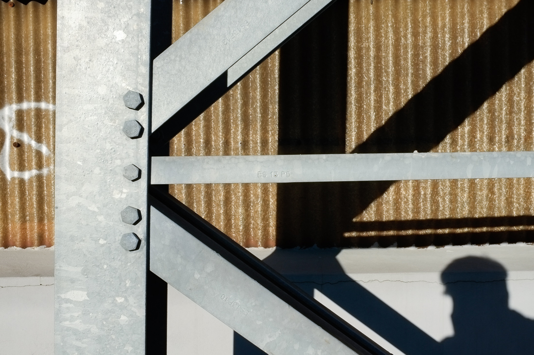Mi piace molto come hai composto, lo sguardo si concentra sull'ombra che tende ad assumere una postura tipica di colui che sta per salire la scala ( mi sembra un antincendio) . Lo sguardo poi va diretto al resto del frame non trovando però nulla, quindi quasi vagando nella parte di estrema sx che sembra non dare molti punti di interesse. Chissà se un formato quadrato avrebbe reso il tutto piu concentrato.  |